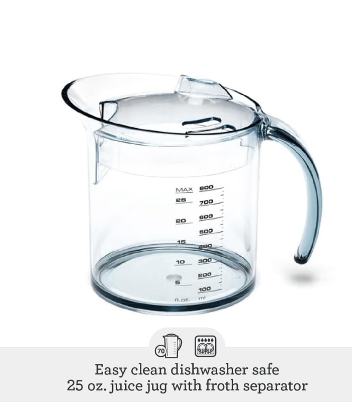 • Capacity: 25 oz juice jug with integrated froth separator and 1.6 qt pulp container